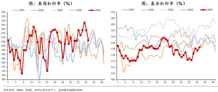 低资金价格下,提高杠杆率。7月以来资金价格整体保持低位低波运行,相较于基金,券商自营整体提高杠杆率水平,且9月末之后显著高于季节性水平。