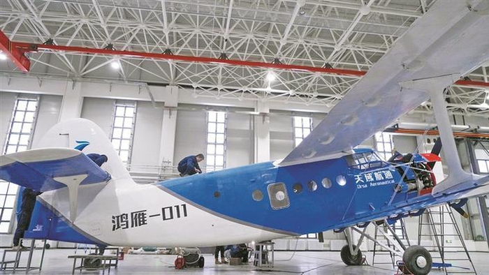 在天域航通大型无人机和通航飞机生产基地,一台国产鸿雁(HY100)大型无人机整装待发(资料图片)。今年前三季度,八师石河子市完成固定资产投资275.75亿元,同比增长15.7%,拉动兵团投资增长2.8个百分点。其中,制造业投资达75.07亿元,增长36%,高技术制造业投资增长85.3%。兵团日报全媒体记者 陈洋 摄