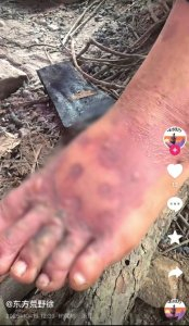 10月11日晚,女选手杨又串烧开水,不慎把盆踩翻导致左脚被烫伤。“特别痛,周围也没有工作人员和安全员。第二天有义工来拍摄,看到我的脚被烫伤了,就走了。第三天徐某过来,简单问了下情况,没有做任何处理。直到第四天,负责人发现我的伤情,告诉我比较严重,强制劝退了。”