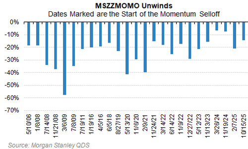 摩根士丹利分析,当前动量股抛售的深度与历史模式相似,其多头组合已从高点下跌19%,接近历史平均22%的跌幅。尽管从持续时间看,抛售潮可能已步入后半段,但市场结构依然脆弱。由于机构和散户仓位高度集中,叠加期权市场的技术性风险,投机性板块仍面临压力,而任何市场普跌则可能为优质股票和宽基指数提供买入机会。