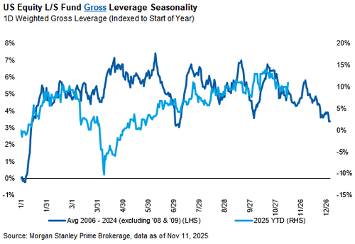 这种高度集中的多头仓位带来了“不对称风险”,一旦基金经理们顺应季节性趋势继续降低总杠杆,将对市场构成压力。