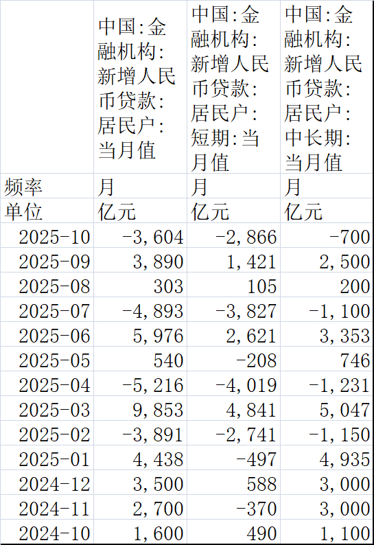 居民贷款是10月信贷同比少增的主要拖累项。