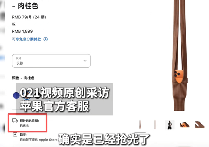 记者询问苹果客服,客服回应:目前产品已经被抢光,售罄后不会再补货,是否会返场不一定,但暂时不会补货。