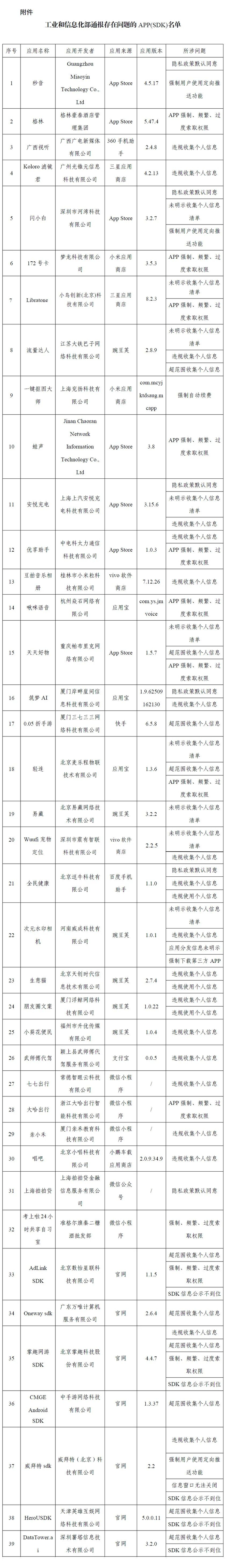 官方通报39款App及SDK!速度自查
