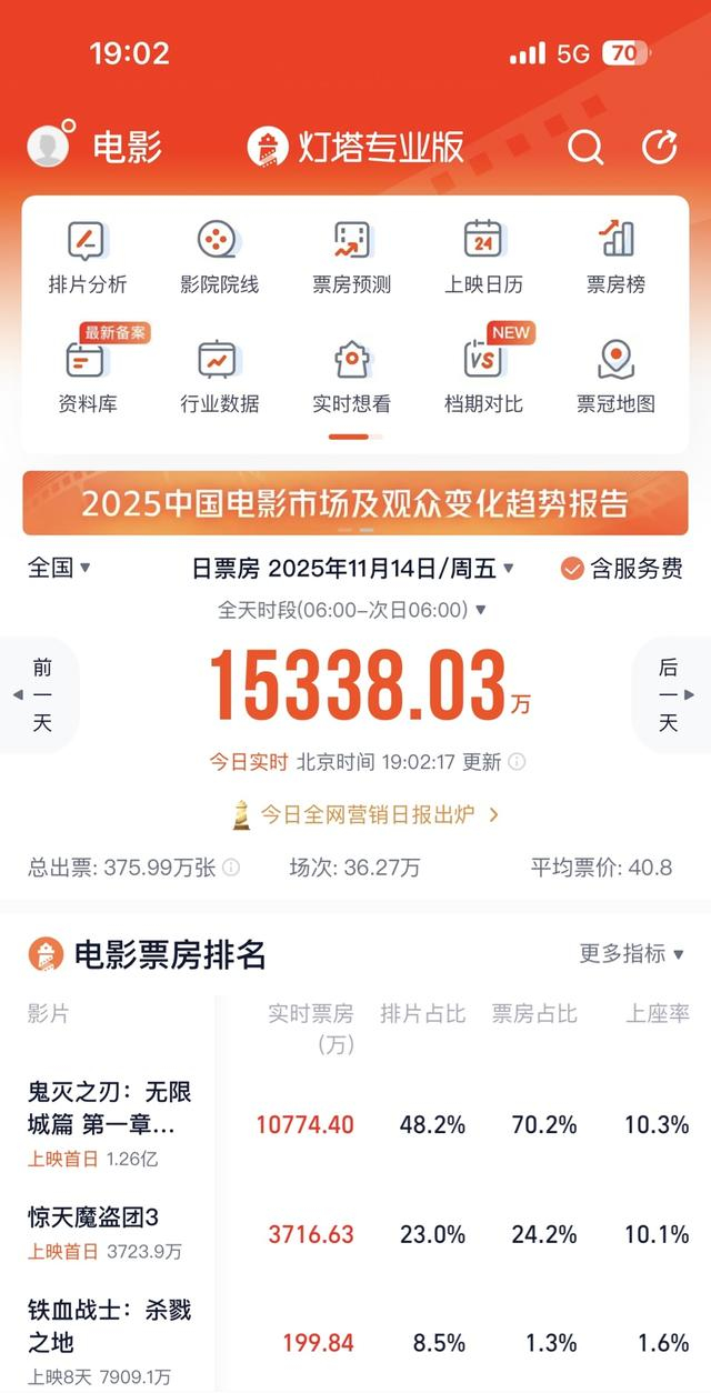 《鬼灭之刃:无限城篇 第一章 猗窝座再袭》今日上映,截至19时票房已破亿