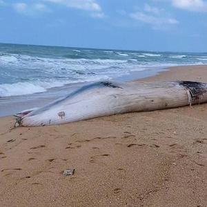 11月14日,有网友在社交平台发布视频称,在海南某地海边发现一头搁浅的鲸鱼。视频显示,鲸鱼体型庞大,在海边沙滩上一动不动。