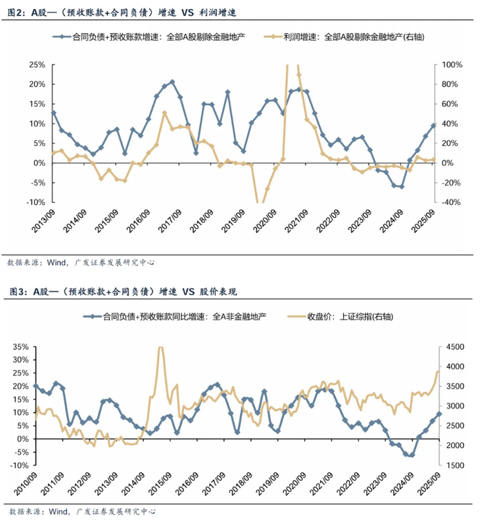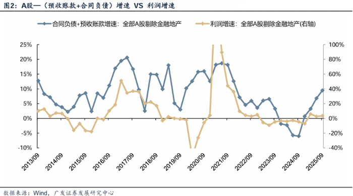 下图可见,中期维度上【预收账款+合同负债】同比增速对于A股整体的利润增速,具有一定的指示意义。