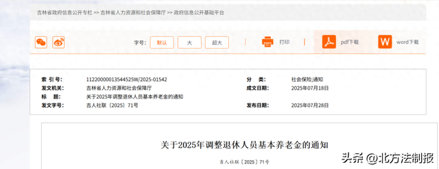 7月28日,吉林省人力资源和社会保障厅、吉林省财政厅联合发布《关于2025年调整退休人员基本养老金的通知》,具体内容如下: