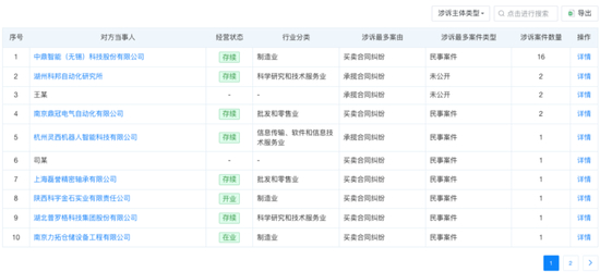 据天眼查显示,中匠智能存在28起司法案件,其中16起与中鼎智能相关,其他案件的原告或被告还包括湖州科邦自动化研究所、王某、南京鼎冠电气自动化有限公司、杭州灵西机器人智能科技有限公司等多家公司和个人。
