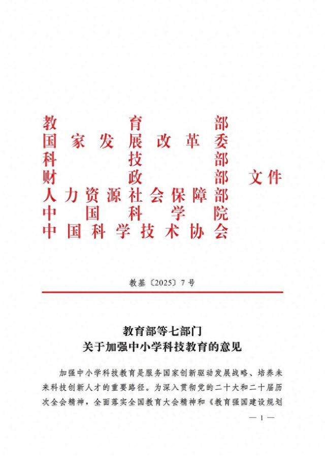 教育部等七部门联合发文:科技教育全面进入中小学!事关千万中小学生!