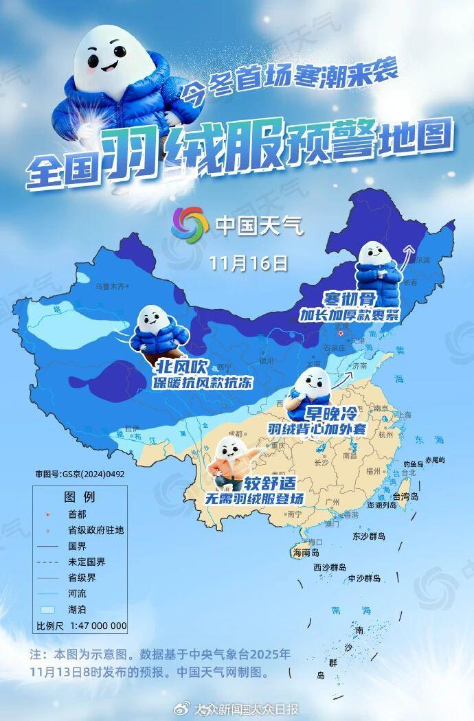 全国羽绒服预警地图出炉