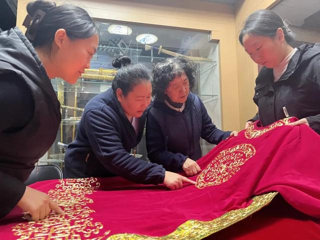 深秋时节,泛黄的树叶与朱门灰瓦相映成趣,古朴静谧的景致掩映下,西草市街32号北京剧装厂内的忙碌一如往常,缝纫机的嗡鸣与丝线穿梭的轻响交织,绣架前的工人凝神飞针,每一寸布料、每一抹色彩都在诉说着剧装戏具的匠心故事。而与往年不同的是,卢梦雪、田朝辉、张洁、王珊珊、高颖5名职工的新变化——经过拜师仪式,她们已正式成为国家级非物质文化遗产项目“剧装戏具制作技艺”代表性传承人、北京剧装厂有限责任公司总工艺师孙颖的弟子。这份“新身份”,不仅是个人职业的里程碑,更为这项传统技艺注入了朝气蓬勃的青春力量。