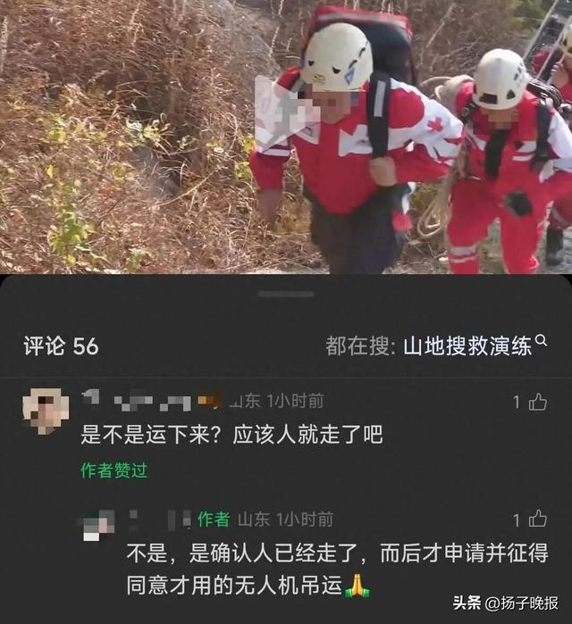 该视频发布后,有网友在评论区质疑无人机在实际救援中应用的可行性。对此,该公众号的发布者和“自称是救援队员”的账号在11月16日回复评论时称,“主要是这个驴友摔的高度太高,征得同意后就不让人受累了”,并明确表示“人确认已走了,而后才申请并征得同意才用无人机吊运”,同时指出此举已向当地公安部门报备。
