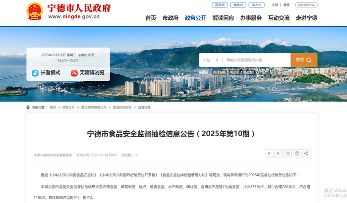 福建省宁德市食品安全监督抽检信息公告(2025年第10期)