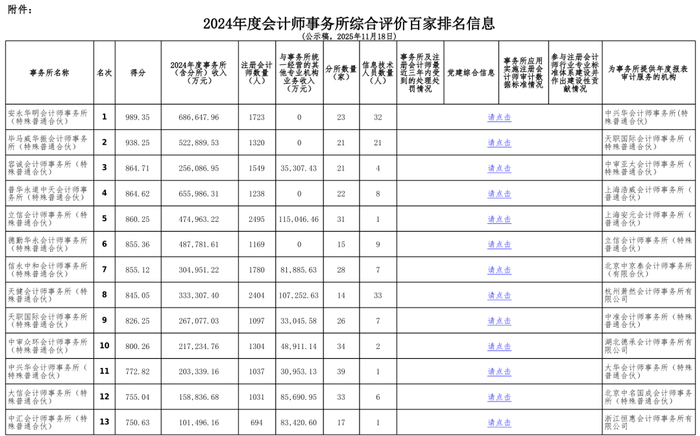 中国注册会计师协会关于发布《2024年度会计师事务所综合评价百家排名信息(公示稿)》的通告