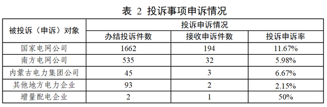 2025年10月,办结投诉事项2337件(含往期结转),12398热线平台接收申诉事项232件,投诉申诉率9.93%;其中,涉及国家电网公司194件、南方电网公司32件、内蒙古电力集团公司3件、其他地方电力企业2件、增量配电企业1件。