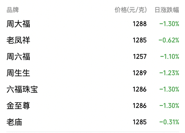 周生生黄金今日下跌16元/克,报价1289元/克,为新的最高价金店;