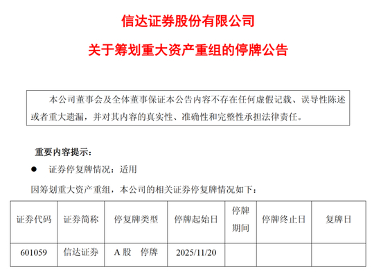 信达证券、东兴证券亦公告称,公司A股股票将于2025年11月20日(星期四)开市时起开始停牌,预计停牌时间不超过25个交易日。