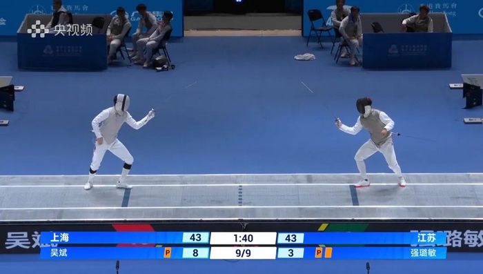 铜牌争夺战中,上海队与江苏队上演一场精彩的攻防战。上海队健儿们凭借精准剑法和不屈的意志,最终实现绝地逆转,夺得这枚宝贵的铜牌。此外,在11月16日举行的男子花剑个人赛中,我校市花剑队员陈奕宁获得个人第七名。