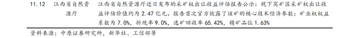 在当前的反“内卷”治理中,价格机制改革与价格监管成为破解“内卷式”竞争的重要抓手,新修订的《反不正当竞争法》于2025年10月15日起施行。7月1日,新修订的矿产资源法正式施行,将锂、稀土等36中矿产纳入战略性目录,实行“保护性开采”,矿权和开采审批权归中央自然资源部。8月9日,江西省宜春市宜丰县圳口里—奉新县枧下窝矿区陶瓷土(含锂)矿正式停产,枧下窝矿区原矿生产规模可达4500万吨/年,是宜春地区规划产能最大的涉锂矿山。其中一期项目1000万吨/年选矿产能已于2023年建成投产。8月以来,锂电池干法隔膜企业、磷酸铁锂企业、湿法隔膜企业相继举行闭门座谈会,会议以反内卷为主题,倡导行业自律。11月12日,江西省自然资源厅公告显示:枧下窝矿区采矿权出让收益评估价值约为2.47亿元。量化指标落地,矿权复产障碍得以逐步清除,同时将提升锂云母精矿项目的成本。