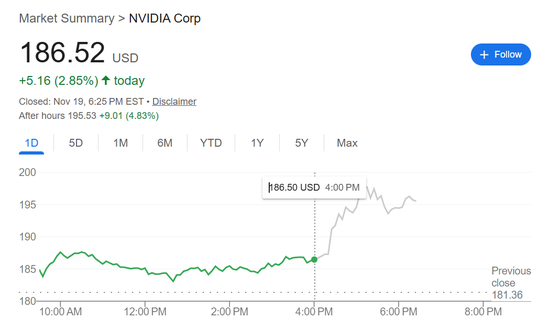 美东时间周三盘后,美股“AI”领头羊英伟达公布了第三季度财报。这份财报业绩本身几乎可称“完美”:不仅在营收和盈利方面均超出分析师预期,并且给出了超出预期的前景展望。公司股价也在盘后上涨,截至发稿涨幅为4.84%。