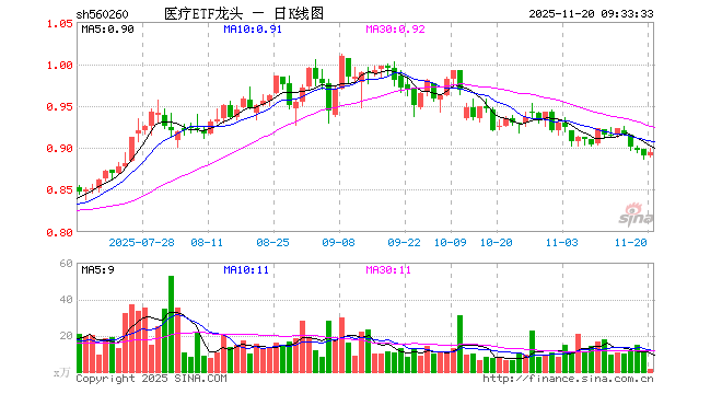 医疗ETF龙头(560260)开盘涨0.00%,重仓股药明康德涨1.28%,迈瑞医疗跌0.00%