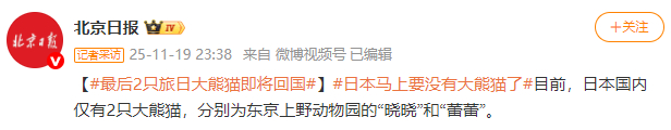 今年6月,在外交部新闻发布会上,朝日电视台记者曾透露,明年2月东京上野动物园的两只大熊猫将回到中国,到那时日本全国将没有大熊猫。