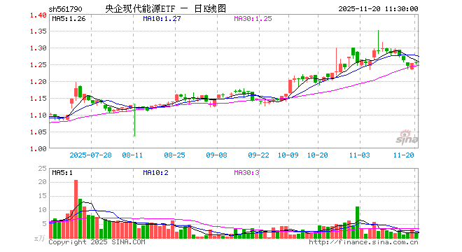 11月20日,截止午间收盘,央企现代能源ETF(561790)涨0.08%,报1.254元,成交额214.12万元。央企现代能源ETF(561790)重仓股方面,长江电力截止午盘涨0.28%,国电南瑞跌0.22%,中国核电涨1.03%,中国铝业涨1.09%,三峡能源涨0.47%,中国电建涨0.72%,国电电力涨1.12%,云铝股份涨0.46%,中国稀土涨1.39%,中国海油涨0.34%。