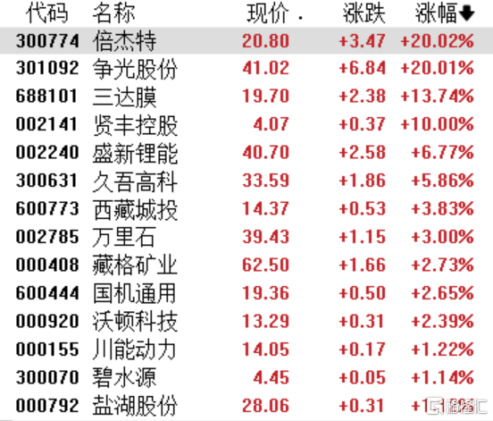 锂矿板块持续强势,盛新锂能涨近7%,久吾高科涨超5%,藏歌矿业涨超2%。