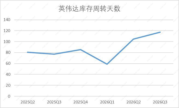 财报显示,截至第三财季末,英伟达的库存总额升至197.84亿美元。根据数据平台Discounting Cash Flows,英伟达的库存周转天数(DIO)目前已达117.5天,而在2026财年第一季度时,这一数字还在58.64天。