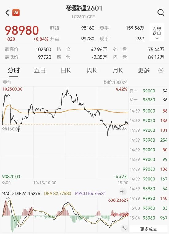 11月18日,广期所曾发布通知称,自2025年11月20日交易时起,碳酸锂期货LC2601合约的交易手续费标准调整为成交金额的万分之一点二,日内平今仓交易手续费标准调整为成交金额的万分之一点二。