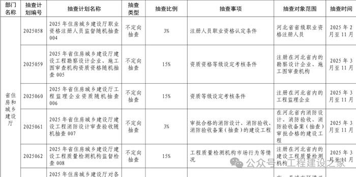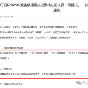 石家庄市发布了《关于开展2025年度省级建设执业资格注册人员“双随机、一公开”监督检查工作的通知》。