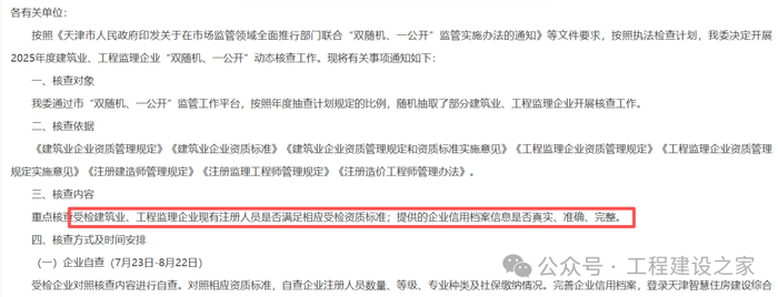 天津在7月份就发布了类似通知,重点核查注册人员是否符合资质标准。其他省份也都在开展这类行动,只是名字可能不太一样。