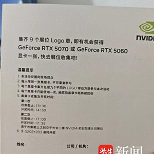 据小金介绍,他是上海某公司的实习生,8月底刚刚入职。11月14日,他受公司委派前往苏州,参加一场由英伟达(NVIDIA)主办的路演活动。当天活动现场有多家企业参与,气氛热烈,主办方开设了一个面向现场观众的集章抽奖活动。