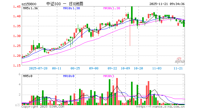 11月21日,中证800ETF(159800)开盘涨1.40%,报1.381元。中证800ETF(159800)重仓股方面,宁德时代开盘跌1.16%,贵州茅台涨0.23%,中国平安跌0.33%,招商银行涨0.02%,紫金矿业跌1.73%,中际旭创跌3.86%,新易盛跌4.22%,美的集团跌1.08%,东方财富跌0.79%,长江电力涨0.11%。