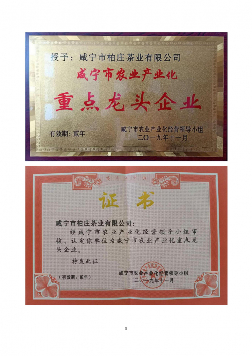近日,咸宁市农业产业化经营领导小组正式揭晓2019年度农业产业化重点龙头企业名单,湖北圣斯立生物科技有限公司(母公司为咸宁市柏庄茶业有限公司,下称“圣斯立生物”)凭借全产业链硬核实力强势入选,将这一青砖茶行业重磅荣誉收入囊中。作为承载“生甡川”四百年青砖茶技艺传承与现代化创新的核心企业,圣斯立生物依托全产业链布局、智能化产能建设与深度助农成效,已成为咸宁市农业产业化高质量发展的标杆企业,更以持续领跑姿态书写中国青砖茶行业发展新篇。