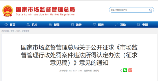 11月14日,国家市场监督管理总局发布的《市场监督管理行政处罚案件违法所得认定办法(征求意见稿)》(以下简称《办法》)引发行业广泛关注。