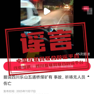 真相:近日,某网络账号在多个社交平台发布视频称“据说四川乐山五通桥煤矿有事故”,引发关注。经当地网信部门核实,该信息系谣言。网传视频是搬运以往旧视频,重新配文后发布,属于旧闻翻炒。请广大网民不造谣、不信谣、不传谣,共同守护清朗网络空间。(来源:四川互联网举报辟谣平台、网信乐山)