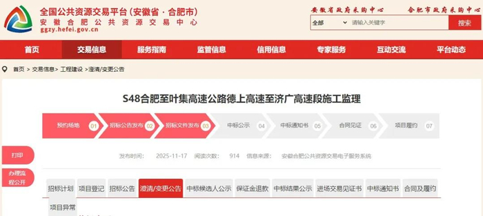 近日,记者从相关部门获悉,S48合肥至叶集高速公路德上高速至济广高速段施工监理招标已经启动,为推动项目早日开工奠定基础。该项目建成后,将完善国家和安徽省高速公路网布局,有助于推进合肥都市圈 及长三角地区高质量发展。