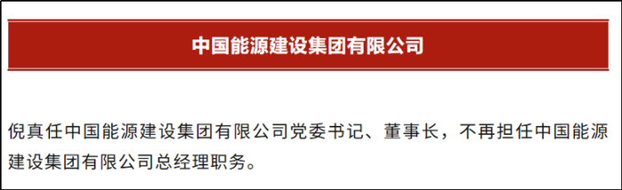 华夏能源网注意到,中国能建集团旗下上市公司中国能源建设股份有限公司(简称“中国能建”,SH:601868)也在同日发布公告称,选举副董事长倪真为公司董事长,任期自董事会批准之日起至公司第三届董事会任期届满止