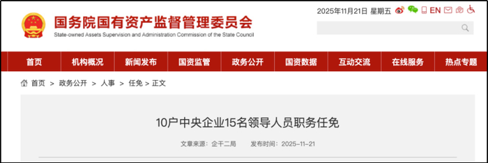 国资委密集调整10家央企领导人,涉及这3家能源央企