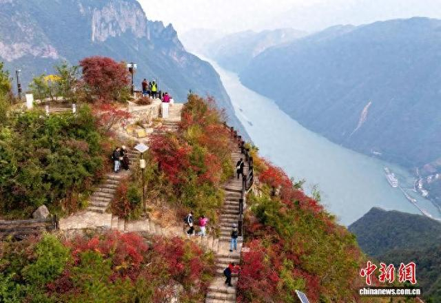 图为长江巫峡神女景区的红叶吸引游客前往参观。中新社记者 周毅 摄
