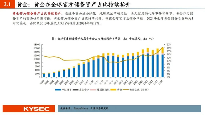 2、贵金属:黄金牛市延续,白银弹性更大。降息周期,美债信用弱化担忧以及全球贸易摩擦风险等宏观大背景下,金价有望继续向上。白银与黄金在金融属性方面具有相似性,黄金上涨后,白银通常具备一定补涨需求,但由于白银的工业需求占比达到50%以上,其金融属性相对弱于黄金。金融属性与工业属性双重影响白银定价,其价格弹性往往比黄金更大。