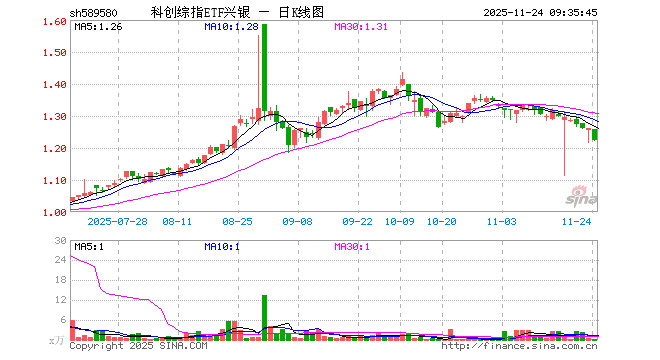 科创综指ETF兴银(589580)业绩比较基准为上证科创板综合价格指数收益率,管理人为兴银基金管理有限责任公司,基金经理为林学晨,成立(2025-05-27)以来回报为21.55%,近一个月回报为-7.31%。