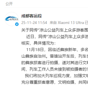 新京报讯 11月24日,@成都客运段 发布关于网传“凉山公益列车上众多游客围堵拍摄彝族老人”的情况说明,内容如下: