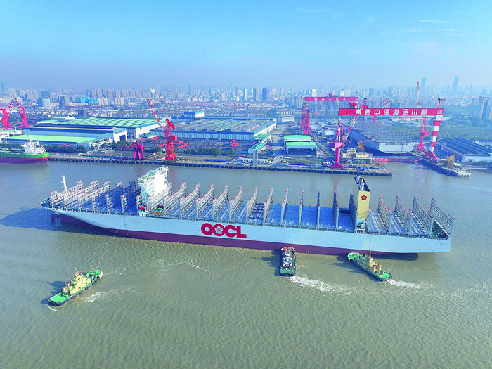 11月20日,南通中远海运川崎建造的第五艘16828标箱大型集装箱船“东方薰衣草”轮在江苏南通市出海试航,标志着该系列船舶建造圆满完成。该船总长367米,最大载重量16.5万吨,集成智能管理与节能环保技术,彰显我国在世界大型集装箱船设计建造领域的领先地位。