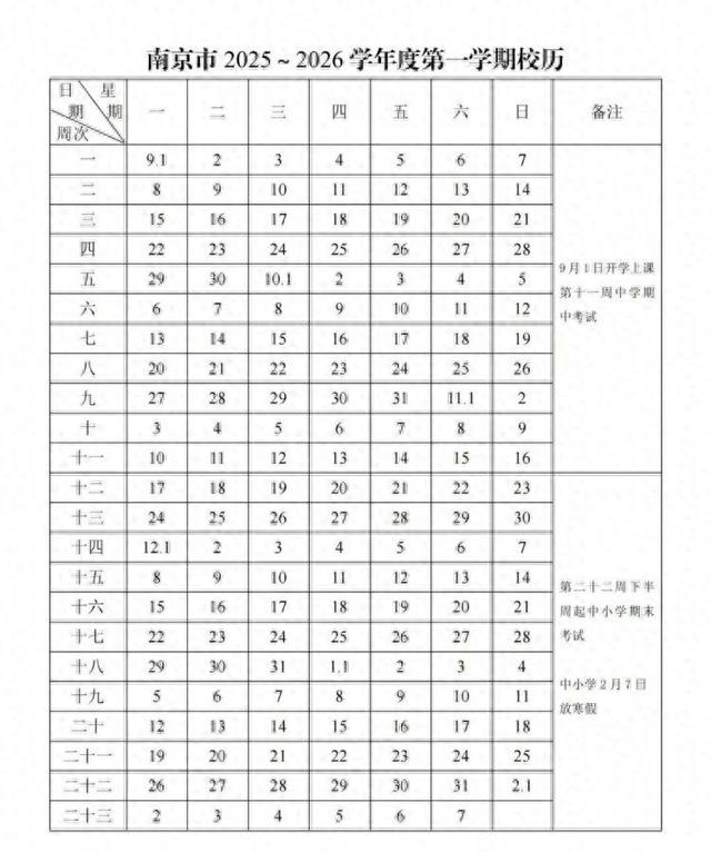 根据南京市2025~2026学年度第一学期校历