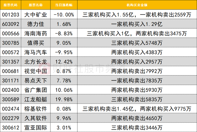 卖出方面,多只AI应用股遭机构大幅卖出,其中视觉中国遭两家机构卖出7992万,易点天下遭一家机构卖出7835万,省广集团遭两家机构卖出5930万。