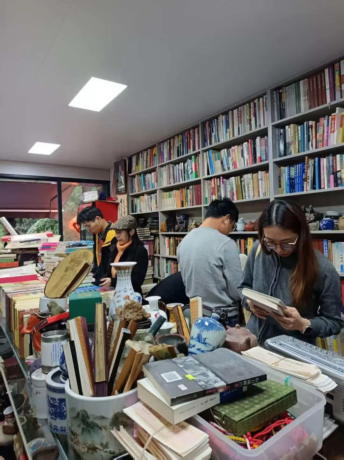每到周日,远近闻名的月河古玩集市会吸引来自全国各地,特别是长三角城市的古玩收藏爱好者,摆摊、淘宝。临近中午时分,逛完花鸟市场、古玩集市,踱进樨香旧书店,看看刚到的“新货”,有中意的话淘几本旧书回家,这对许多爱好阅读的人来说,是一件十分惬意的事。