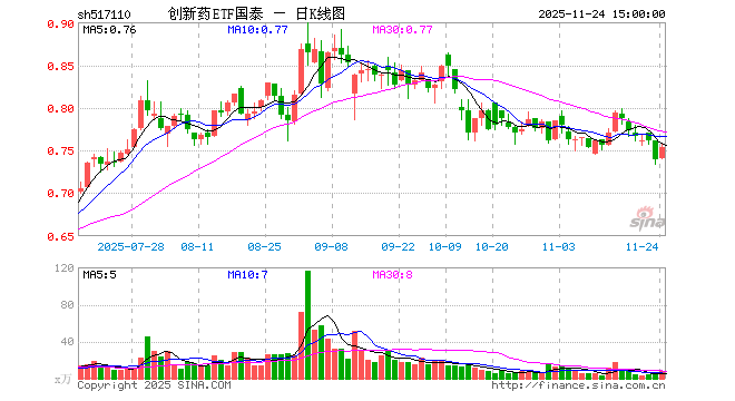 11月24日创新药ETF国泰(517110)份额减少300.00万份,最新份额5.85亿份,最新规模4.43亿元